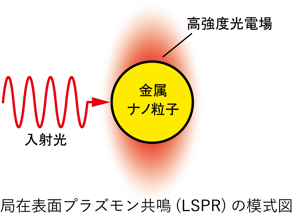 ナノメートルスケールまで微細化された金属に光を照射すると、金属表面付近において自由電子の集団振動が励起され(局在表面プラズモン共鳴:LSPR)、金属ナノ構造体の表面近傍に高強度の光電場が形成されることが知られています。